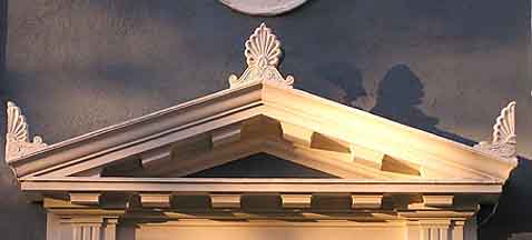 1- Blocks or flat pedestals resting on the apex and on the lowest ends of the triangular pediment to support statues or carved ornaments.