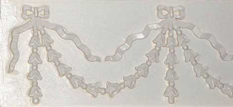 The decoration is based on conventional bell-shaped flowers or catkins, used in continuous chain or swag or in graduated size as a vertical pendant. It is similar to the "husk" design.