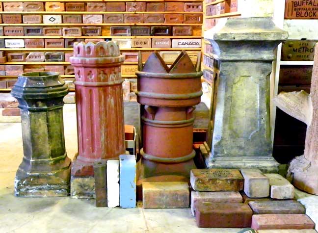Terra cotta chimney pots, some of which are from Buffalo buildings
