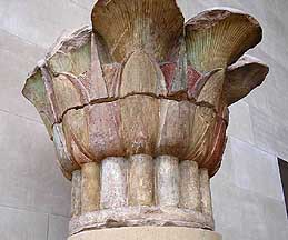 - Right illustration: Egyptian composite papyrus capital 2 rows of papyrus plants