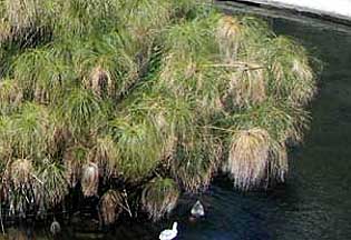 Triangular-stemmed reed, which grew about 13 ft. tall, flourished along the banks of the Nile, but vanished due to overharvesting for boats, baskets, sandals, rope, and writing material. Attempts are now being made to reintroduce it into Egypt.