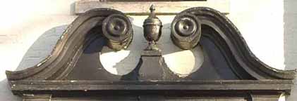 ArchitectureA type of broken pediment with S-shaped curves, like two swans' necks facing each other