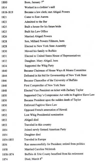 Chronology of Millard Fillmore's Life Compiled by Virginia Vidler, 1979