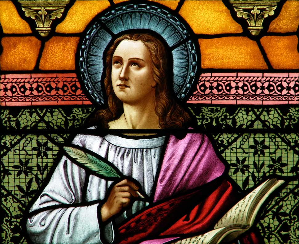 | St. John the Evangelist - Detail Traditionally the name used to refer to the author of the Gospel of John, the First, Second and Third Epistles of John, and the Book of Revelation. See Iconography in Art and Architecture: St. John the Evangelist LARGER SIZE beneath top photo |