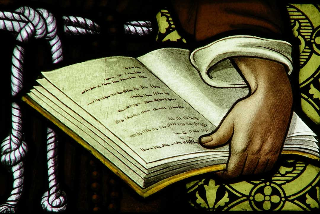 Here represented in a monk's habit with prayer book