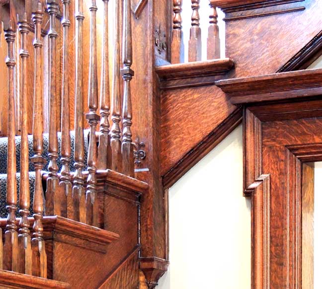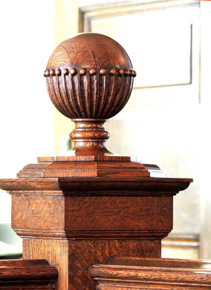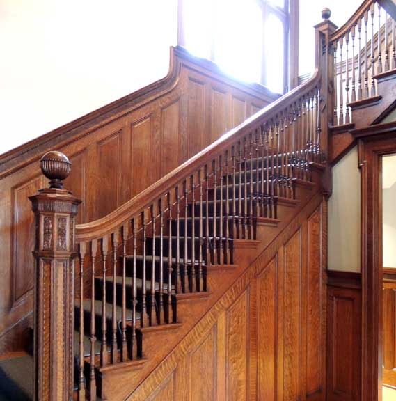 Reception hall![]() Victorian staircase ... Note parquet floor. ![]() Parquet floor ![]() Oak staircase features paneled wainscoting ![]() Newel post: Gougework ... Carved foliated panels ![]() Turned balusters ... Vertical bead-and-reel applied molding ![]() Oak ... Vertical bead-and-reel applied molding ![]() ![]() Turned balusters ![]() ![]() ![]() Turned balusters ![]() Note gadrooned finial ![]() Gadrooned finial ![]() Door surround shoulder |