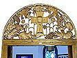 Baptismal Screen. 3-dimensional carving representing baptism of Christ |
