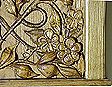 Side panel detail: central panel showing violet, rose, and chrysanthemum - all representing months of the year |