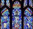 Side panel detail: descending dove representing the Holy Spirit; Advent rose |