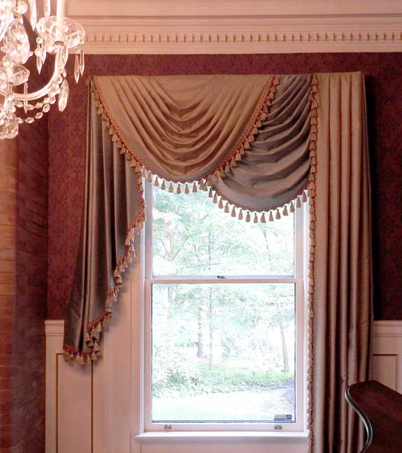 Dining room ![]() Note door (detailed below:) ![]() Hepplewhite style ornamentation on sideboard at right ![]() Queen Anne style dining room chairs ... Paired wing chairs ![]() China cabinet ... Two Queen Anne style dining room chairs |