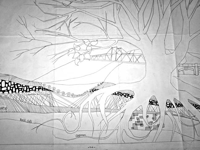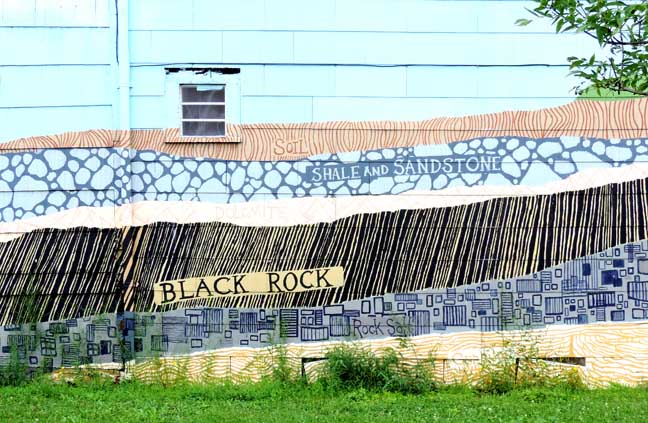 Details below, from the right:![]() ![]() ![]() "Soil" ..."Shale and Sandstone" ... "Black Rock" ... "Rock Salt" ![]() "[Niagar]a River" ![]() Reprinted from "A Mural-a-thon in Black Rock" in Buffalo Spree (online August 2014) |