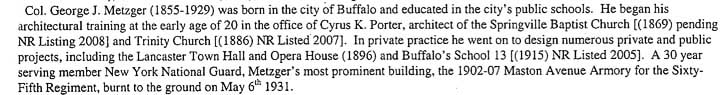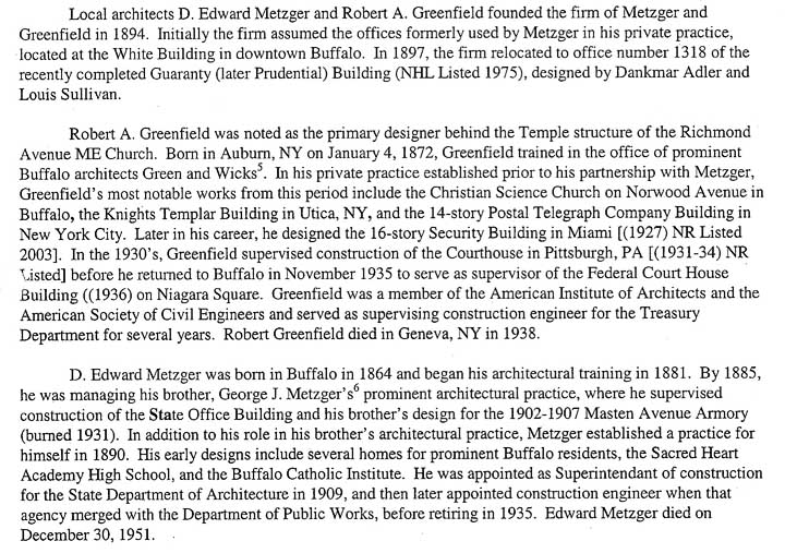 George J. Metzger in Buffalo Metzger& Greenfield, Architects Text excerpted from the Nomination for State & National Registers of Historic Places By Jennifer Walkowski for Clinton Brown Company Architecture/Rebuild