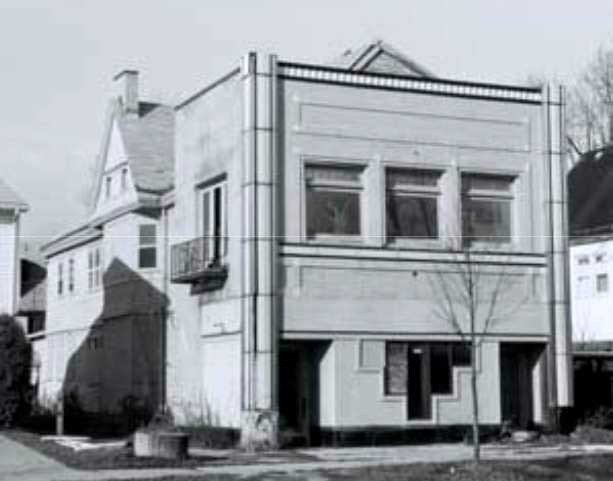 1936 - A brick and tile Art Deco storefront was added, and a two-story garage was built at the rear of the lot.