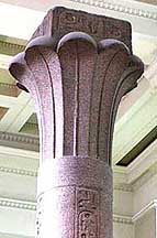 Reprinted from Columns, seldom over six diameters high, often appear in the form of papyrus or lotus stalks tied at intervals by bands. The circular shafts curve in towards the base like sheathed stalks and sometimes stand on thick unmoulded bases which in shape somewhat resemble a Dutch cheese. Another form of support were the Osiris pillars used in the mortuary temples at Thebes, the forerunners of the Caryatids of the Greeks, while the 6-sided columns of the Tombs at Beni Hasan are another variety. Capitals mostly follow the forms of the lotus (emblem of Upper Egypt), the papyrus (emblem of Lower Egypt), and the palm, and are as follows: |