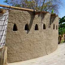 built of sun-dried mud bricks. Huts were made of reeds with inward sloping (battered)