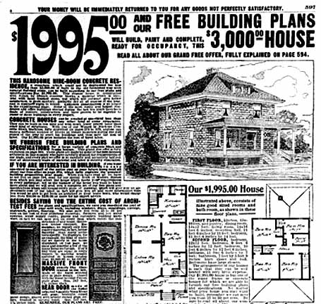 They were available at building supply houses, but also could be made on-site using block machines sold by Sears, Montgomery Ward, and other building suppliers. The 1910 Sears Building Catalog sold molds not only for blocks, but also for fluted columns, column bases and capitals, piers, water tables, and nearly any detail needed to assemble a house.