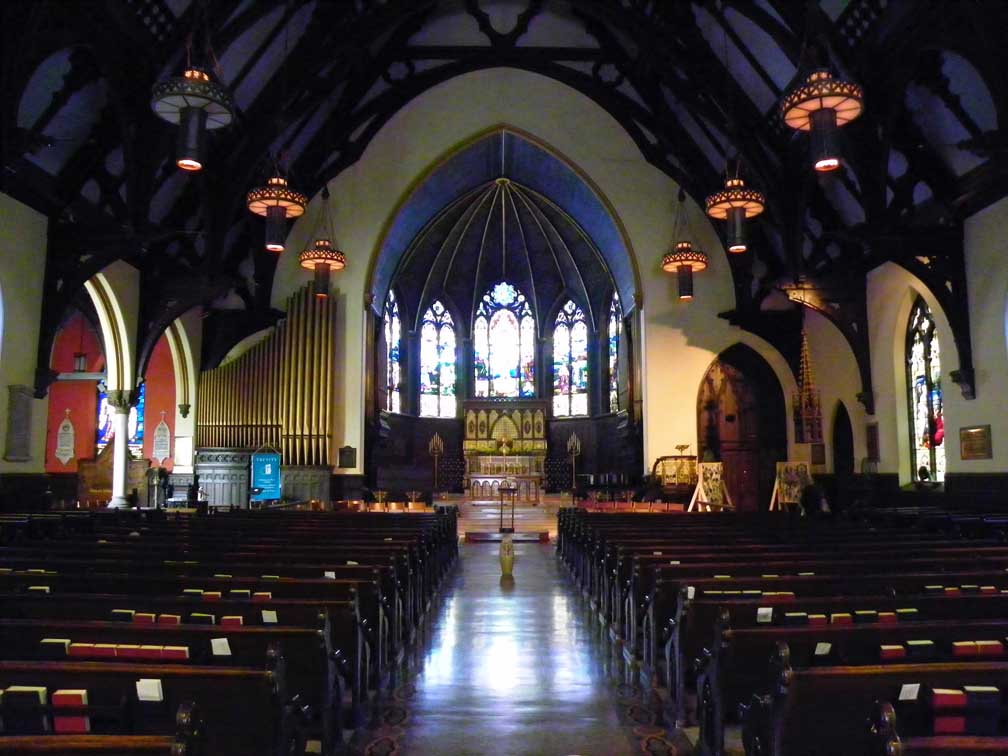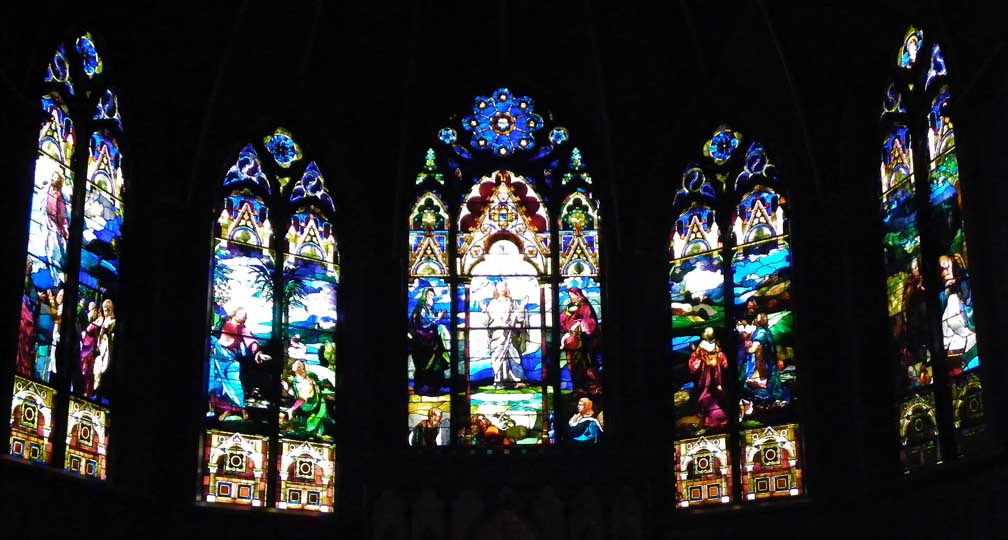 Trinity Church possesses some of the finest stained glass in America. The five magnificent windows in the apse and the rose window are by John LaFarge who developed a new method of manufacturing semi-translucent glass that simulated painted effects. Opalescent