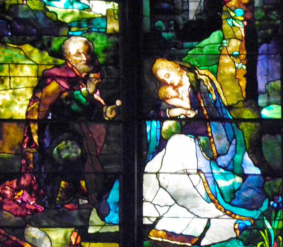 in Egypt .......... ![]() The Repose in Egypt ... The Repose in Egypt portrays the story of the angel's warning to Joseph and the flight to Egypt. Joseph gives the Rose of Jericho to Mary, which according to legend, grew wherever the Holy Family rested. ... LaFarge may have used Fra Bartolomeo's Rest on the Flight into Egypt c. 1500 a starting point ... Iconography in Art and Architecture: Flight Into Egypt ... Iconography in Art and Architecture: Saint Joseph ... Two details below: ![]() The Repose in Egypt detail # 1 ... James P. White and his wife Mary Anna Dobbins gave this window in memory of his adoptive parents Dr. James P. and Mary Elizabeth Penfield White. ... Dr. White was a co-founder of the University of Buffalo's medical school and a member of the Christ Church vestry. ![]() The Repose in Egypt detail #2 |