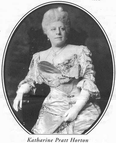 Horton's wife was born in 1842 and vied with her husband in tracing her family back to a lord of the manor in the twelfth century. Before 1910 she acquired #477 Delaware from which she promoted her career as the Daughter par excellence of the American Revolution. The Buffalo D.A.R. had been organized in 1892 and Katharine Pratt Horton became its second regent. John Horton, who disliked the organization, called it: