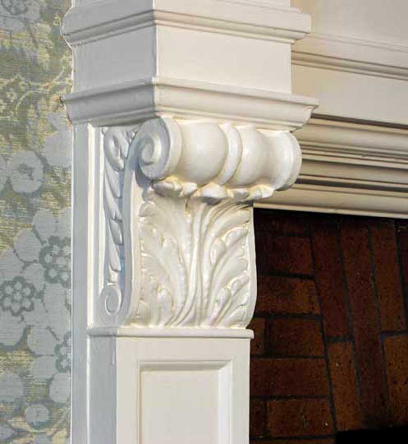 Third floor ![]() Third floor inglenook ![]() Detail #1 Inglenook ![]() Detail #2 Corbel carved with acanthus leaves ![]() Corbel carved with acanthus leaves support mantel |