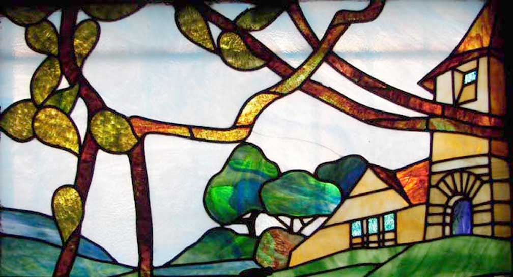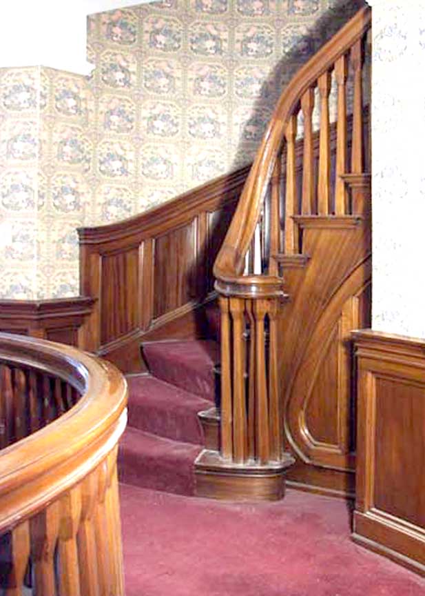 Basement ![]() Oak wainscoting Note window at right - next three photos below: ![]() Arts and Crafts design includes some opalescent stained glass ![]() ![]() Arts and Crafts design includes some opalescent stained glass ![]()