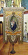 Silk, gold and silver thread, precious gems, oil on canvas |