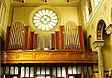 Rose window above the organ |