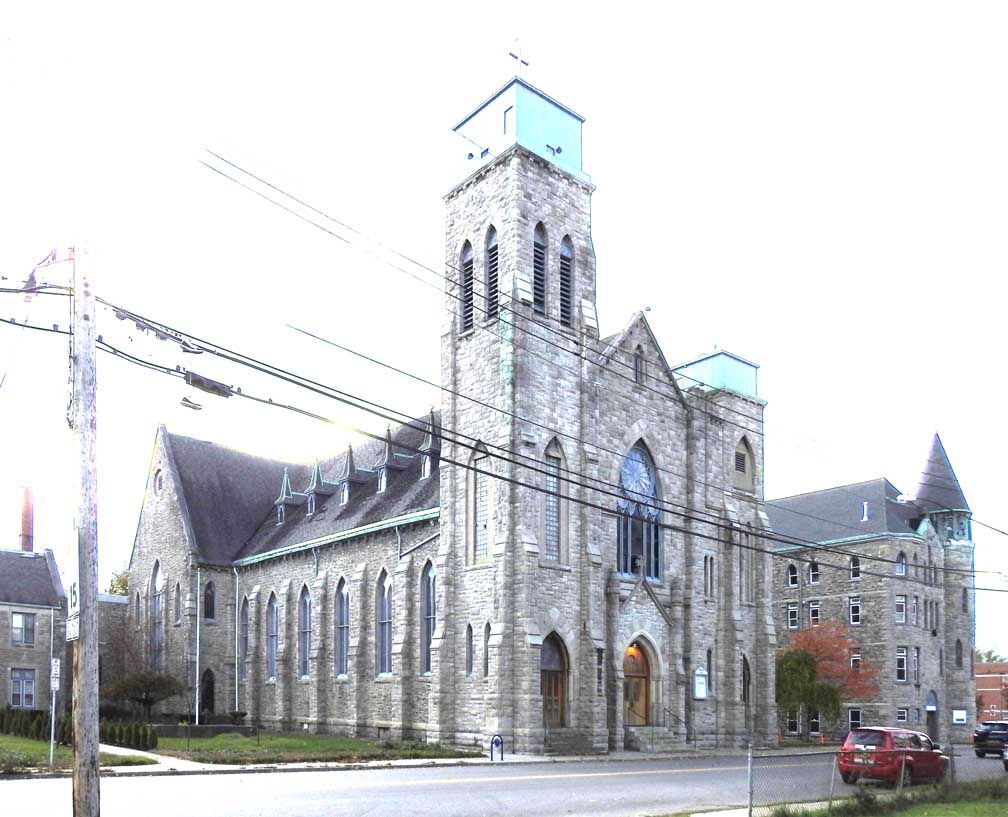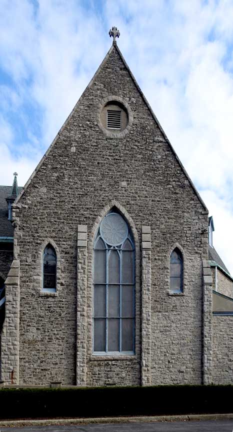 elevation![]() Note former school at right - McDermott Lofts (online November 2020) ![]() Far left: Former rectory ... East elevation ... Facade ... Far right: Former school/ McDermott Lofts (online November 2020) ![]() Note former rectory at far left ![]() Former rectory ![]() East elevation: East transept at left ... Lucarnes in roof ... Modillions "support" cornice ... Vertical pier buttresses ... Nave windows ... Random ashlar stone pattern ... Stone tower at right ... Stone ` table ![]() Lucarne with flared roof ![]() Modillions "support" cornice ... Vertical pier buttresses ... Gothic nave windows ... Onondaga limestone ... Stone water table |