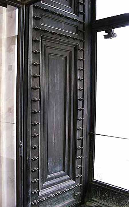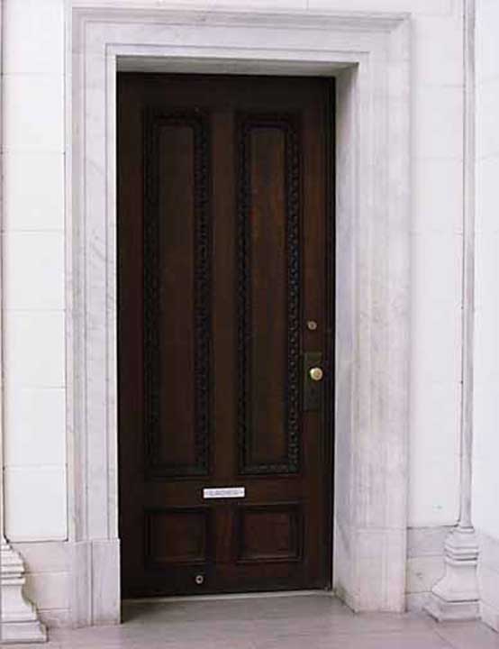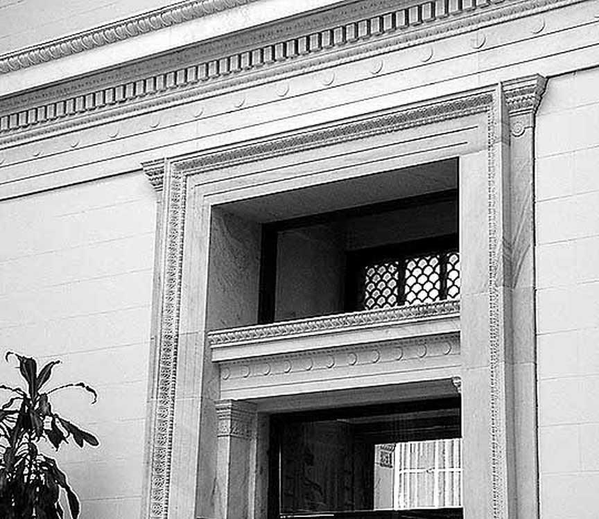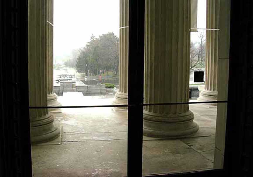 Ionic column: Leaf-and-dart ... Volutes ... egg-and-dart ... Bead-and reel ... Fluted shaft ![]() Entablature: Bead-and reel ... Egg-and-dart ... Leaf-and-dart ... Dentils ... Pilaster ![]() ![]() Entablature above columns ![]() Entablature: Leaf-and-dart ... Two Paterae ... Greek key Ionic column: Leaf-and-dart ... Volutes ... Egg-and-dart ... Bead-and reel ... Fluted shaft ![]() Note side surrounds (detail below:) ![]() Carved marble molding: Leaf-and-dart ... Bead-and reel ![]() Bronze door ![]() Marble surround around wooden door ![]() Wooden door molding features Bead-and reel and Leaf-and-dart ![]() ![]() ![]() ![]() View east: Delaware Park and Hoyt Lake |