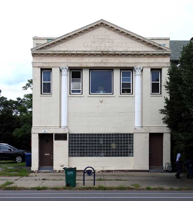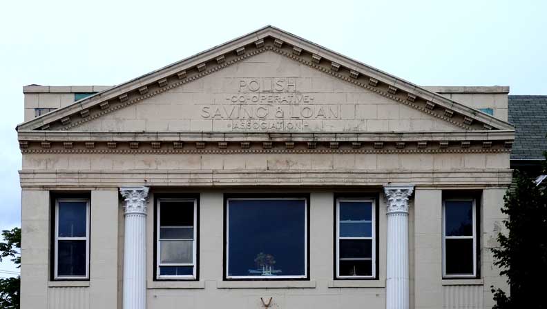 ![]() ![]() Neoclassical style ... One of a number of buildings designed by architect Wladyslaw H. Zawadzki ![]() Tympanum: Polish Cooperative Savings and loan Association ... Pediment with block modillions and dentil molding ... Corinthian columns ![]() Corinthian column ... (Capital detail below:) ![]() Corinthian capital |