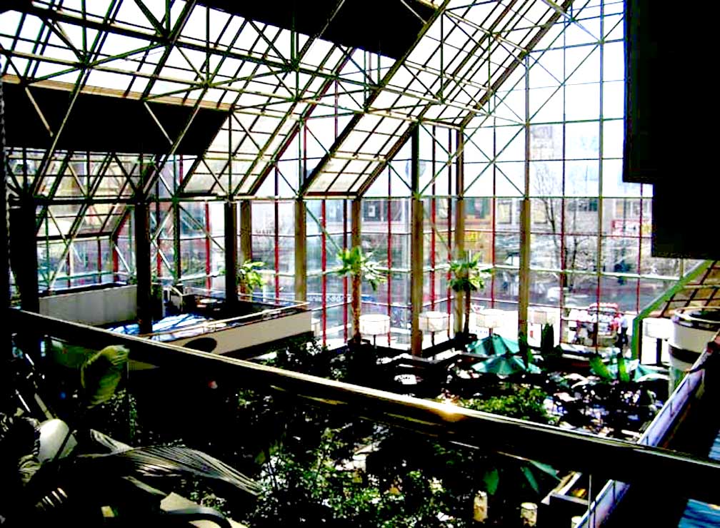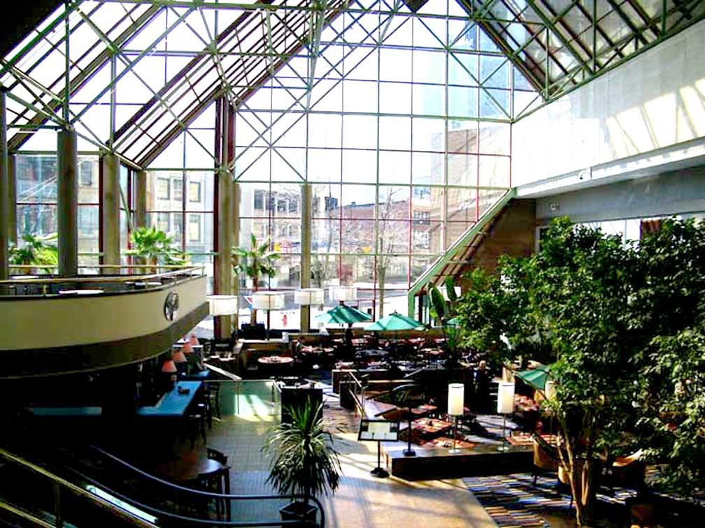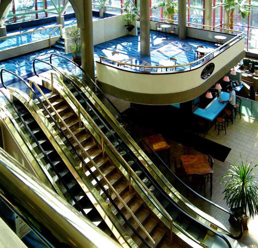 Restaurant and Lounge ![]() Main floor restaurant Mezzanine lounge at left ![]() View of the restaurant from the mezzanine ![]() Restaurant glass wall ![]() Escalator to mezzanine ![]() Mezzanine lounge ![]() Mezzanine lounge ![]() View of the restaurant glass wall from the mezzanine lounge |