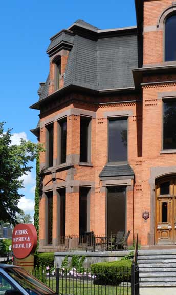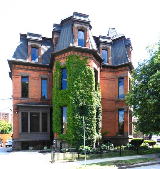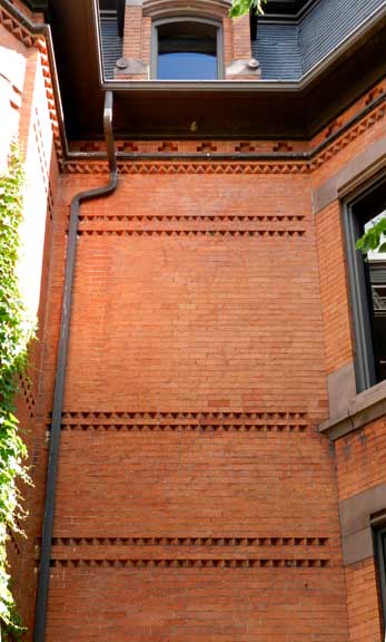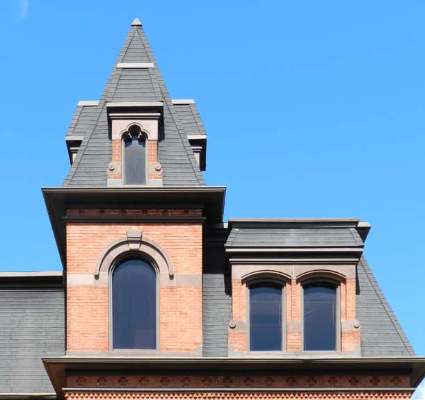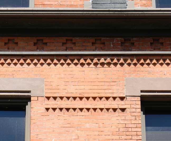 Façade![]() Second Empire ... Erected: C. 1877 ![]() Straight Mansard roofs ... Sawtooth course ... Brick ![]() Arches: Trefoil ... Round, with keystone ... Segmental ![]() Trefoil arch ![]() ![]() Cross motif in frieze ... Sawtooth course ![]() Cross motif in frieze ... Sawtooth course ![]() Segmental arches ... Floor-to-ceiling Second Empire windows ![]() ![]() Second Empire double doors ![]() ![]() |