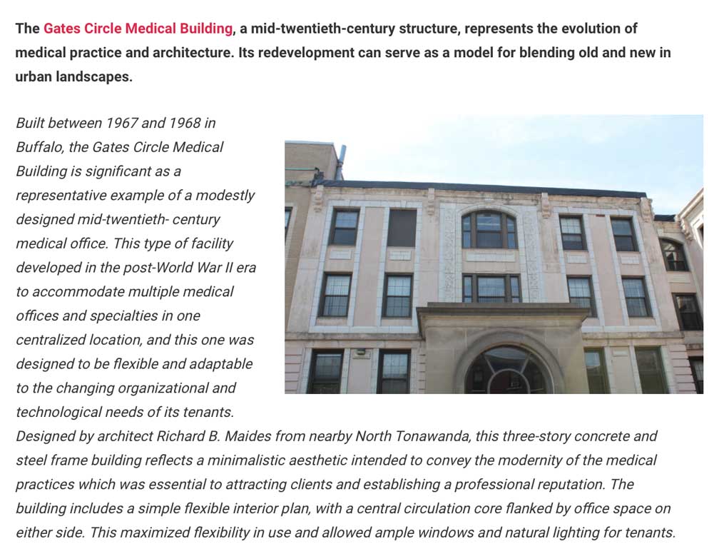 ![]() View from Linwood Avenue ... 1911 building ![]() Historic courtyard of 1911 Buffalo Homeopathic Hospital, showing building campaigns from 1911-1958. Source: Barbara Campagna, BAC[A+P]: Millard Fillnore Hospital (online July 2017) ![]() South facade, showing building campaigns from 1911-1928. Original entrance to hospital. Source: Barbara Campagna, BAC[A+P]: Millard Fillnore Hospital (online July 2017) ![]() Nominated for State and National Registers of Historic Places in 2024 Source: Buffalo Rising (online May 2024) ![]() East facade, showing 1911 and 1928 building campaigns. Original Nurses' Residence. Source: Barbara Campagna, BAC[A+P]: Millard Fillnore Hospital (online July 2017) ![]() East facade, showing 1911 and 1928 building campaigns. Original Nurses' Residence. Source: Barbara Campagna, BAC[A+P]: Millard Fillnore Hospital (online July 2017) ![]() ![]() Delaware Avenue (west elevation) ![]() |