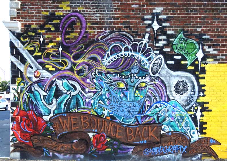 ![]() Mural is advertising for the hair salon ... By Maddgrafix: Mark Madden ... See also above and below ![]() Note hair salon images: scissors and hair dryer ![]() ![]() ![]() Maddgrafix: Mark Madden ![]() ![]() Maddgrafix: Mark Madden ![]() LATER ADDITION - PHOTO TAKEN AUGUST 12, 2020 Mask and "WE BOUNCE BACK" refers to the 2020 Covid-19 pandemic ![]() LATER ADDITION - PHOTO TAKEN AUGUST 12, 2020 ![]() LATER ADDITION - PHOTO TAKEN AUGUST 12, 2020 ![]() LATER ADDITION - PHOTO TAKEN AUGUST 12, 2020 |