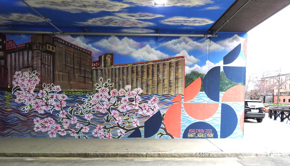 south on Main Street on July 28, 2021 ![]() Note tunnel, where the mural is being painted on July 28, 2021 ![]() July 28, 2021 ![]() WORK IN PROGRESS - July 28, 2021 Artist Ashley Kay and assistant ![]() WORK IN PROGRESS - July 28, 2021 Ashley Kay and assistant ![]() WORK IN PROGRESS - July 28, 2021 Artist Ashley Kay |