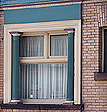 Distinctive twin 3-story turrets with conical roofs and side oriel |