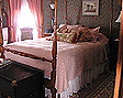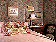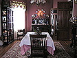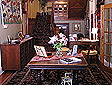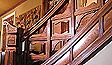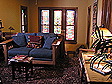 Second floor sitting area overlooks the colored glass windows on the staircase landing |