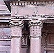 Dentil molding ... Paired columns feature capitals with beading above acanthus leaves |