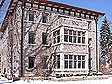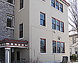 Tudor Revival style 2-story bay window with parapet was added to the Georgian Revival façade in 1923. |