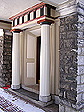Classical features on the Georgian Revival style house: Mutules and triglyphs with guttae |
