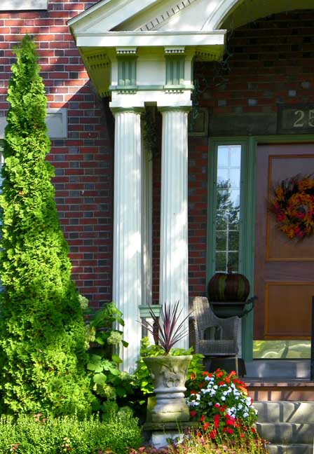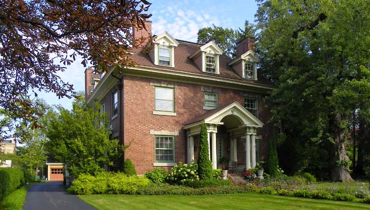 ![]() Colonial (Georgian) Revival ![]() Broken pedimented dormers ..... Stone lintels and sills ..... 8 over 8 first story lights ![]() Portico with Broken pediment ![]() Broken pediment ..... Dentils ..... Keystone ..... Paneled pilasters ![]() Stone lintels and sills ..... Mutules ..... Triglyphs ..... Drops ![]() Portico with Broken pediment ..... Mutules ..... Triglyphs ..... Drops ..... Fluted column shafts ![]() ![]() Portico with Broken pediment ..... Mutules ..... Triglyphs ..... Drops ..... Fluted column shafts ![]() Flemish bond |