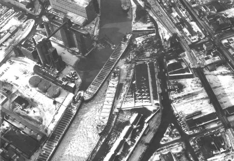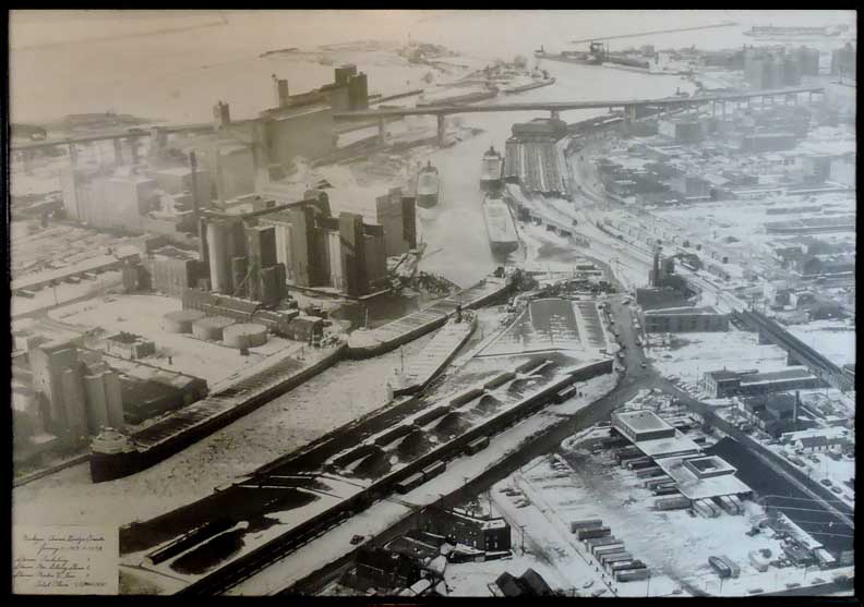 On the brisk night of January 21st, 1959, members of the Michigan Avenue bridge crew also came to find out how the end of an ordinary work day could turn into anything but ordinary in a matter of seconds. The MacGilvray Shiras, one of many great lakes freighters routinely moored up for the winter, patiently waited the annual thawing of the waterways. Owned by The Kinsman Marine Transit Company (which is, yes, owned by the Steinbrenner family), Shiras sat in the Buffalo River by the Continental Grain elevators at the base of Smith Street just like any other night. The clock approached 11 P.M. as the Michigan Avenue bridge crew allegedly finished up their drinks at the nearby Swannie House, one of the oldest taverns in Buffalo (Est. 1886 and still serving). There was a staff shift to take place on the hour. Whether it be a significant other, an entire family, or even something as humble as a bed to rest their backs on after a long day's work, it can be assumed that these men were looking forward to getting off work and going home. The roots of St. Clair Street moored another freight, named The Michael K. Tewksbury. For the owner of the ship, as well as the men about to get off work, it was just like any other night: the freights were unmanned, the river was tranquil, and anyone with a financial stake in the freighting industry could not ask for the ice to melt any quicker. Three miles from the Shiras, five miles from the Tewksbury, six miles from the bridge, an ice jam in Cazenovia Creek broke loose, literally dumping excess water and fragmented ice right out into the Buffalo River. First, the Shiras. This massive influx of everything cold had its way with the freight upon impact, causing the ship to “dead-man.” In old Irish sea terminology, this commonly refers to the wires and cables securing anything from the masts to, in this case, the vessel itself coming undone. Back when thick ropes where implored, you could picture the ensuing chaos of one of the main masts starting to collapse, giving the term “dead-man” some validity (because if the crew did survive, whoever's poor skills where behind the lazily secured ropes and cables were as good as dead). Alas, this is not the time of the explorers such as Columbus; we use extremely high-tension cables. And, just like those ropes that held up those masts, these came undone. They flailed through the cold Buffalo night air by no one's will other than physics, one after another. Each powerful whiplash of freshly snapped high-tension wire allowed the monster to descend that much faster down the river. Next was the Tewksbury. Shiras hit her just right, merely uprooting her and taking her with him. The sound of the collision was the gunshot that commenced the head-to-head race between the two freights to the Michigan Avenue Bridge. Word finally began to spread about these unmanned ships careening down the Buffalo River and local authorities were notified. Naturally, Mother Nature already plotted the ship's trajectory; the only thing anyone could do was make sure that nothing was in its path. The Buffalo Fire Department called the bridge station to inform them that they needed to raise it. The phone rang but to no avail as the staff was finishing up their drinks across the street. When efforts were finally made to try to raise the bridge it was just too late. Shortly after 11 P.M. the two freights collided head on with the structure, causing a pile up of gargantuan proportions. Two banged up ships, both over 400 feet long, and the remains of a bridge now sat in a channel roughly 175 feet long. The water and ice quickly overcame this accidental dam and proceeded to flood out the entire historic “Old First Ward District.” Thankfully there were no casualties. |
