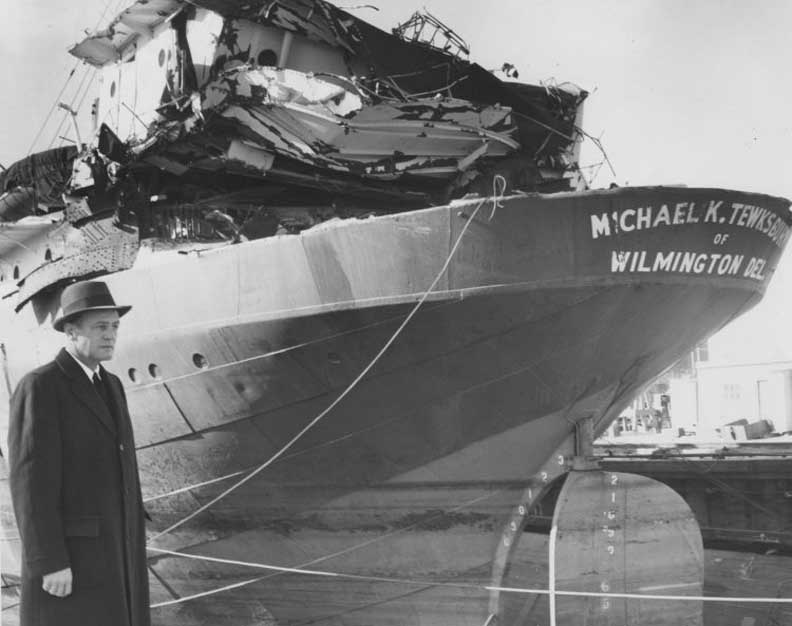 Tewksbury, president of the Midland Steamship Lines, surveys the damage