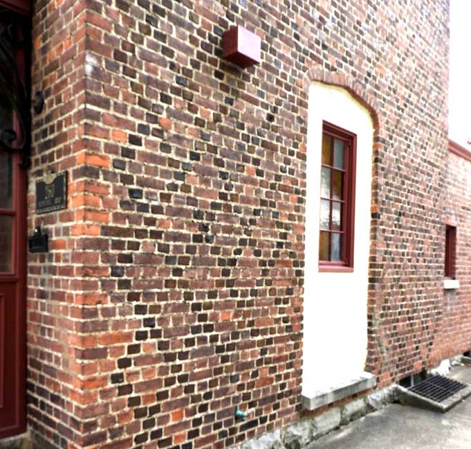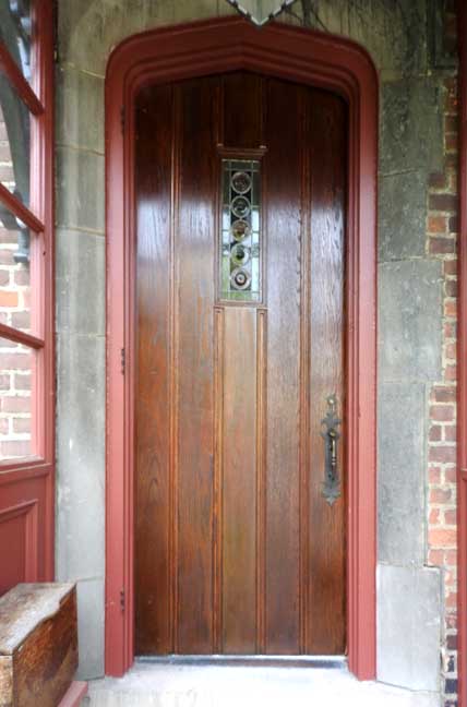 west elevations![]() East elevation Tudor Revival half-timbering ![]() West elevation ![]() Tudor Revival diamond bond using dark header bricks ![]() An earlier door |