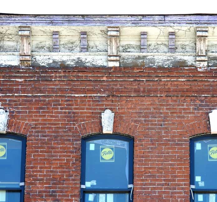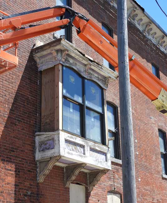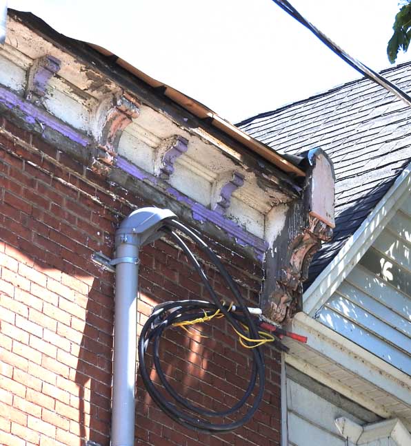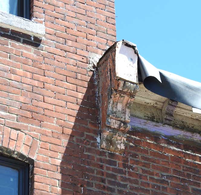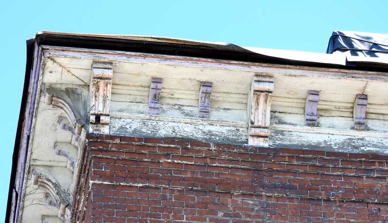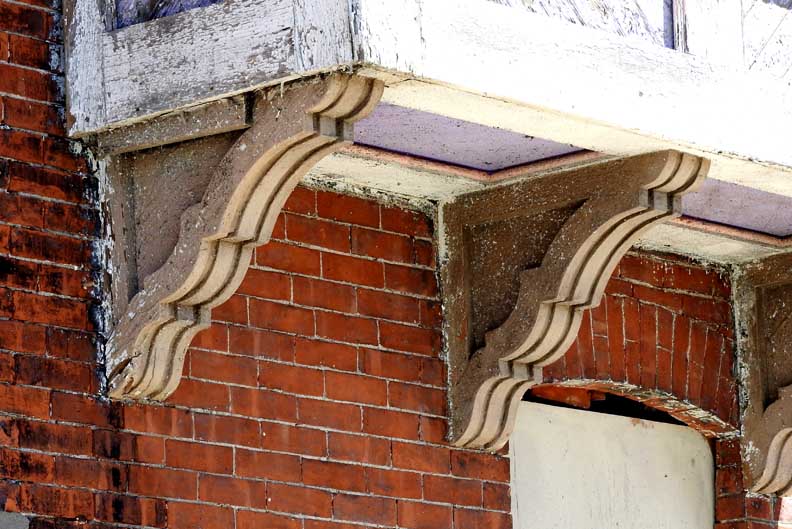 South Elevation on Breckendridge St. Photos taken June 2017 ![]() ![]() ![]() Modillions ![]() Oriel window ... Two details below: ![]() Modillions ![]() Scroll-sawn brackets supporting the oriel ![]() ![]() Two details below: ![]() Detail #1 - Cast iron Corinthian column ![]() Detail #2 - Cast iron Corinthian column ![]() |