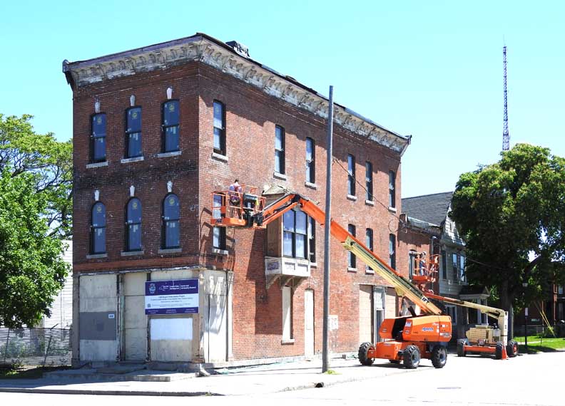 A 2,000 sq.ft. restaurant and three residential units are planned for the building- two one-bedroom units with approximately 600 sq.ft. of living space and a two-bedroom unit with 1,040 sq.ft. The project was awarded $282,500 in 2015 under the Buffalo Main Street Initiative that focuses on revitalization of neighborhood commercial districts. Funding is through the New York State Division of Housing and Community Renewal and administered by the Old First Ward Community Association. 1225 Niagara Street functioned as a grocery and meat market with boarding rooms above. Redevelopment plans were prepared by Carmina Wood Morris. |