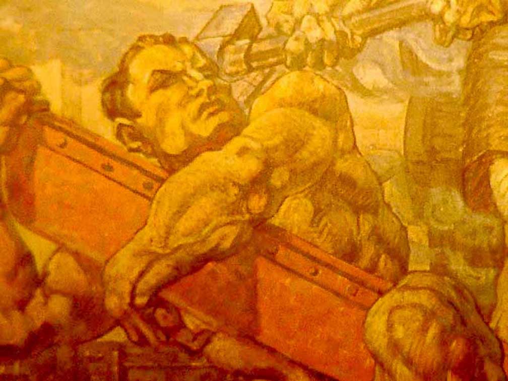 ![]() Vestibule bronze transom is identical in design to exterior transoms ![]() Entering the building from the high-ceilinged portico, one passes through a low vestibule in preparafion for entrance to the dramatic vaulted space of the central lobby. Under the three- story-high barrel vault, every surface is ornamented with rich materials and fine craftsmanship. An air of solemnity, even mystery, is sensed. ... Each of the square floor files is locked to the adjacent tile with an inlaid brass butterfly. ... The floor around the panels is figured green carcluth marble. The green marble also forms a continuous baseboard around the entire lobby. ![]() Reeded pilasters of green carduth marble ![]() The corridors are two-story-high vaults forming, at their termination, a semi-circular wall at the second story level. ![]() ![]() ![]() ![]() ![]() ![]() ![]() ![]() ![]() The front and rear end walls of the lobby at the second floor level, display large richly colored mural paintings by William de Leftwich Dodge, a New York City artist. appear to be held aloft by two green marble pillars, as though on an easel, The painting at the rear, facing the entrance, is titled "Talents Diversified Find Vent in Myriad Form." William de Leftwich Dodge studied in the late 19th century in Europe, notably with the French academic painter, Jean Leon Gerome. Dodge's murals won many awards in late 19th century international expositions and received praise in numerous installations in Boston, New York, and Washington, DC. His mural "Ambition" in the Library of Congress is well known. Other mural work is in respected New York hotels, among them the Astor, Algonquin, Devon, and Waldorf Astoria, in the Majestic Theater in Boston, Esquire Theater in New York, Academy of Music in Brooklyn, and Orpheum Theater in Kansas City. ![]() Seated in the center is a heroic female figure of Buffalo, haloed in a sunburst. She is holding forth festoons of golden fruit. ![]() Detail ![]() The mural represents the industries of Buffalo at which her citizens work. ... Grain storage, agriculture, water commerce, steel making, construction, and transportation are all represented. ![]() ![]() Larger-than-life-size solemn figures, two male, two female. They are allegorical representations of character traits that are expected of the public servant, namely: VIRTUE, DILIGENCE, FIDELITY, and SERVICE. The four centrally located figures were sculpted by Albert T. Stewart, the sculptor of the exterior friezes. From the shoulders downward, the sculpted lines become less distinct and completely dissolve at their base. ![]() Figures stand against a light stone pier, in a shallow niche. The stone pier rises to become a band of stone arching over the surface of the vault, united to the opposite pier, as one continuous element. The two arches divide the vault into three areas of painted acoustic tiles. ![]() The system of interlocking "Akoustolith" tiles forming a continuous curved vault surface was installed by the Raphael Guastavino Co. of New York City. ... There are thousands of individual tiles in the vaults. The tiles are decorated with painted panels of designs derived from Native American signs and symbols. ... The center of the larger middle area has an octagon containing feathers outlined in gold, representing a Native American headdress. ... See ceiling by Gustavino Co. in St. Francis de Sales Church. ![]() ![]() ![]() Captions sources:
