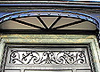 Main entrance detail - Wrought-iron design on transom light of door |