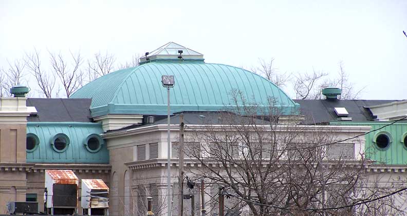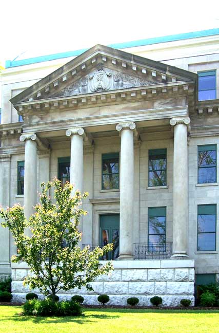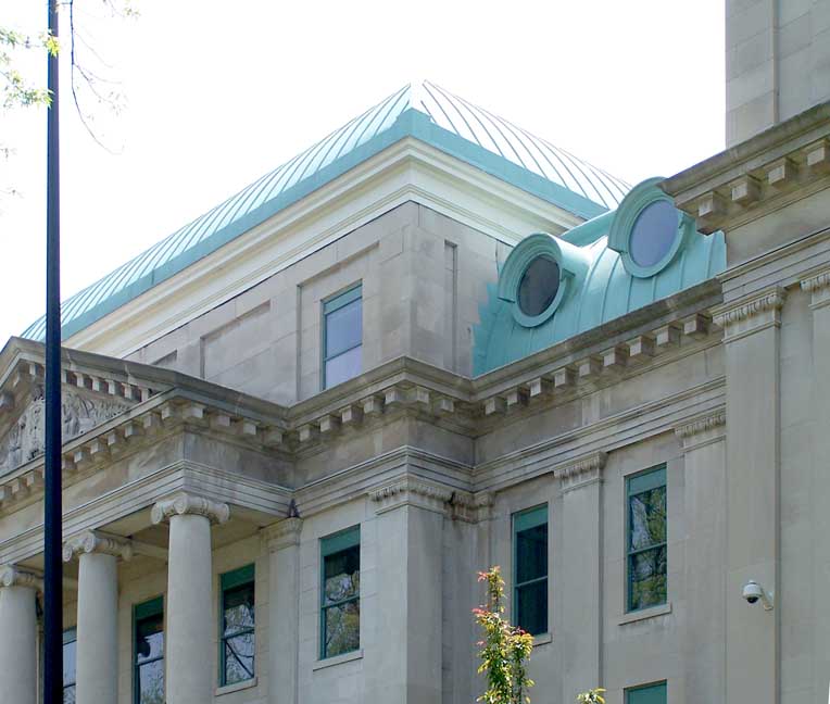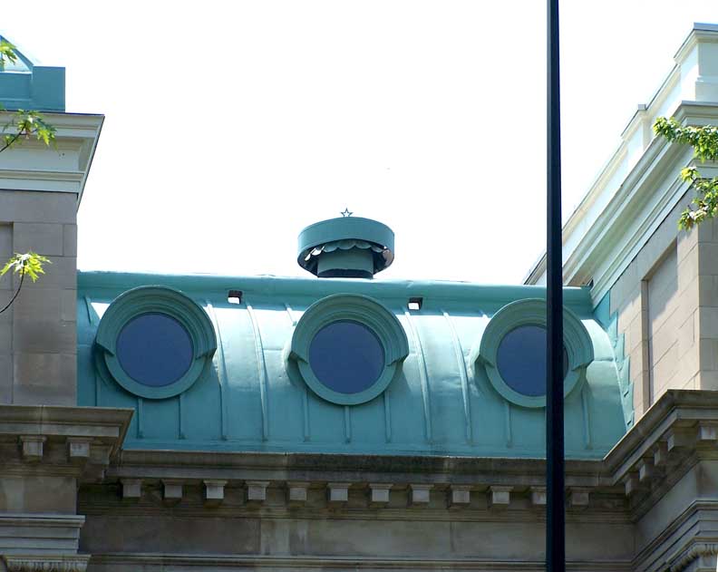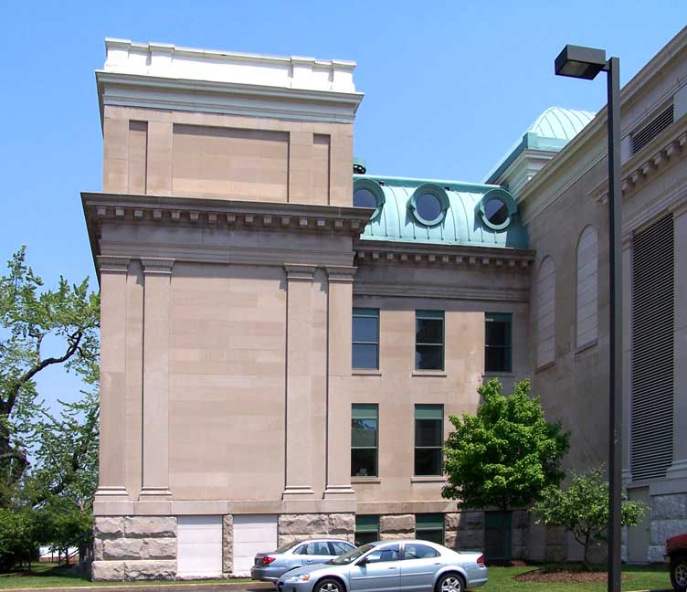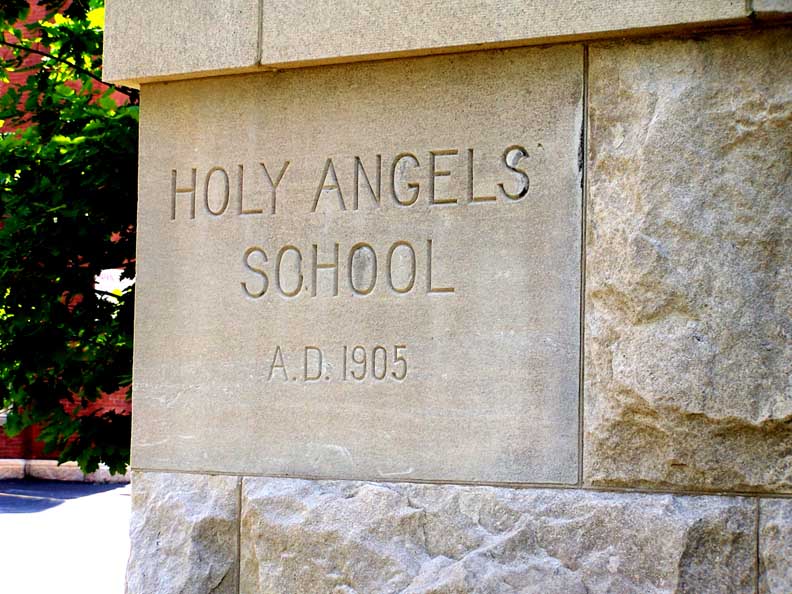 Condition Report: Holy Angels School![]() Cornerstone ![]() ![]() Elaborate attic story: Beaux Arts Classical style ... Two story building with tetrastyle portico and pilasters: Neoclassical style ... Exterior bearing walls are made up of several wythes of brick faced on the outside with Indiana limestone veneer. ... Originally had classroom wings on the north and south ends of a central block ![]() 2016 photo taken from Connecticut Street. Top roof: 4-sided dome topped by pyramidal sky lighted lantern Lower left roof: Copper convex mansard roof with round hooded windows Lower right roof: Straight mansard roof with round hooded windows Cf. mansard roofs at the Louvre Museum, Paris ![]() Center bay monumental tetrastyle portico features Roman Ionic columns ... Mansard roof punctuated by tubular shaped dormers faced with round, wood-framed windows ![]() Tetrastyle portico features Roman Ionic columns and pilasters ... Three details below: ![]() Portico detail #1 - Indiana limestone ... Block modillions support pediment ... Tympanum: Angels and acanthus leaves flank cartouche (detailed below:) with leaves, S scrolls, and C scrolls ... Roman Ionic columns ![]() Symbol of Missionary Oblates of Mary Immaculate that founded Holy Angels church and school ... Cross covered by crown of thorns and sun rays ... Source: Diocese of Hamilton (online Jan. 2017) ![]() Portico detail #2 - Roman Ionic column ... Tuscan pilaster with egg-and-dart-decorated capital ... Indiana(?) limestone ![]() Portico detail #3 - Wrought iron balustrade features S scroll motif ![]() .. Mansard roof punctuated by tubular shaped dormers faced with round, wood-framed windows ![]() Copper round hooded windows ... Block modillions support pediment ... Tuscan pilaster with egg-and-dart-decorated capital ... Indiana(?) limestone ![]() ![]() Air vent ... Sheet metal convex mansard roof with round hooded windows ... Block modillions ![]() Straight mansard roof with round wood-hooded windows ... Block modillions ![]() Tuscan pilasters with egg-and-dart-decorated capital ![]() 2 bay west wing ... Four foot high parapet tops left bay |