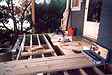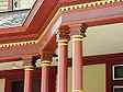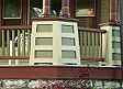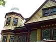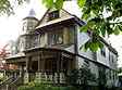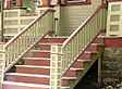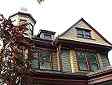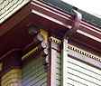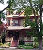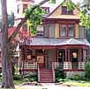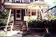 side (right side of house) was added within a decade of the original. In 1992, layers of roofing material covering the original cedar were torn off and replaced with architectural-grade shingle, having the appearance of weathered cedar. The most significant exterior improvements have occurred since July of 1998, when disassembling and tearout of the porch began. Columns, newels, rails and balusters were saved for reference. Carved capitals were the only torn-out element set aside to be stripped, repaired and reused ñ all others were recreated to match the salvaged profiles. Every element of the porch, except the columns and salvaged capitals, were rebuilt. In August 1999, as the porch neared completion, the restoration paint job began. The owner had settled on olive greens, with appropriate secondary and accent colors as offered in "Victorian Exterior Decoration," by Roger W. Moss and Gail Caskey Winkler. Indian Red was an important factor in her selection and placement, since there had been several indications that it was part of the original paint scheme. |